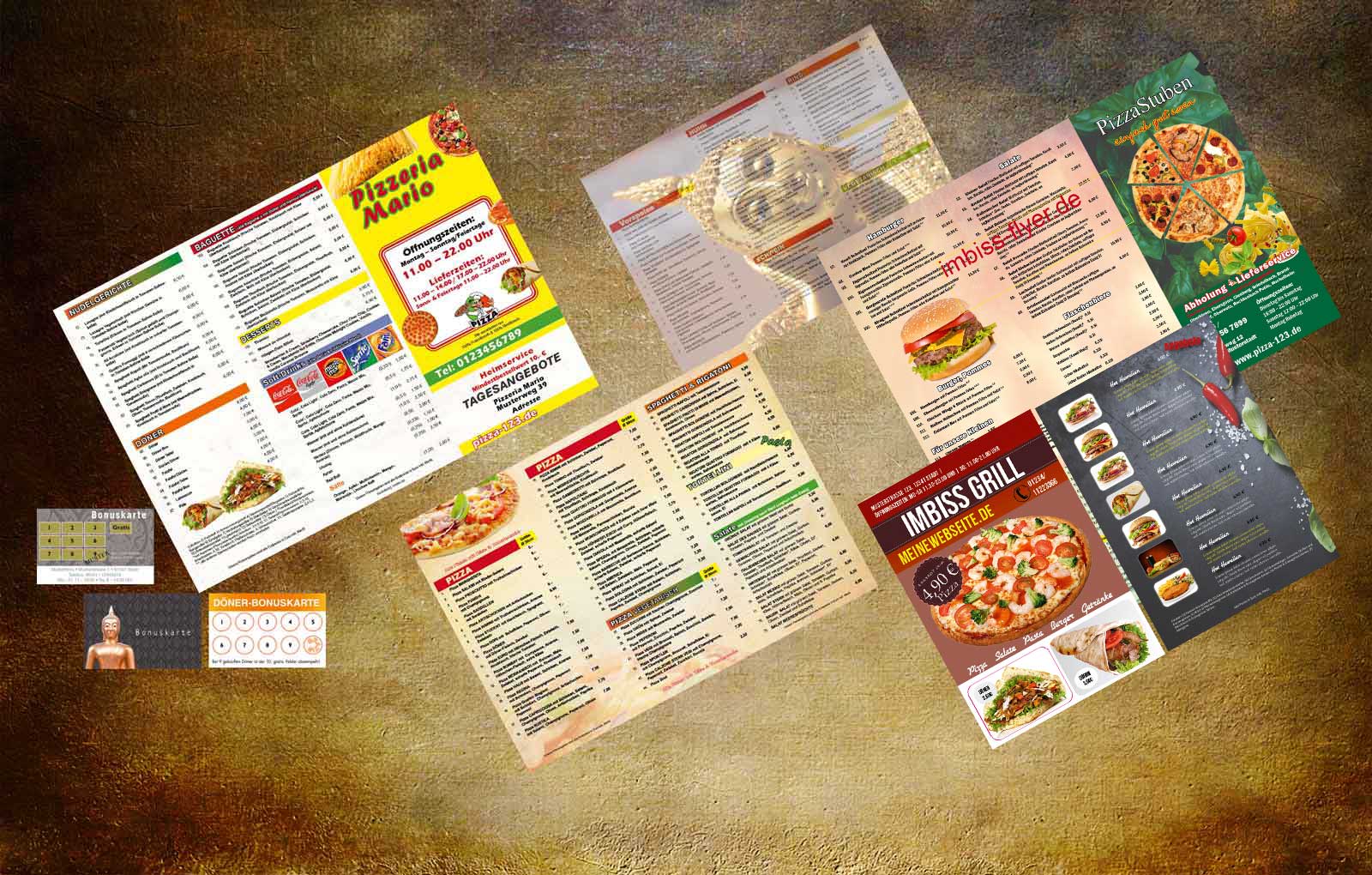 Pizza Flyer, Imbiss Flyer, Speisekarten Lieferservice , Bonuskarten